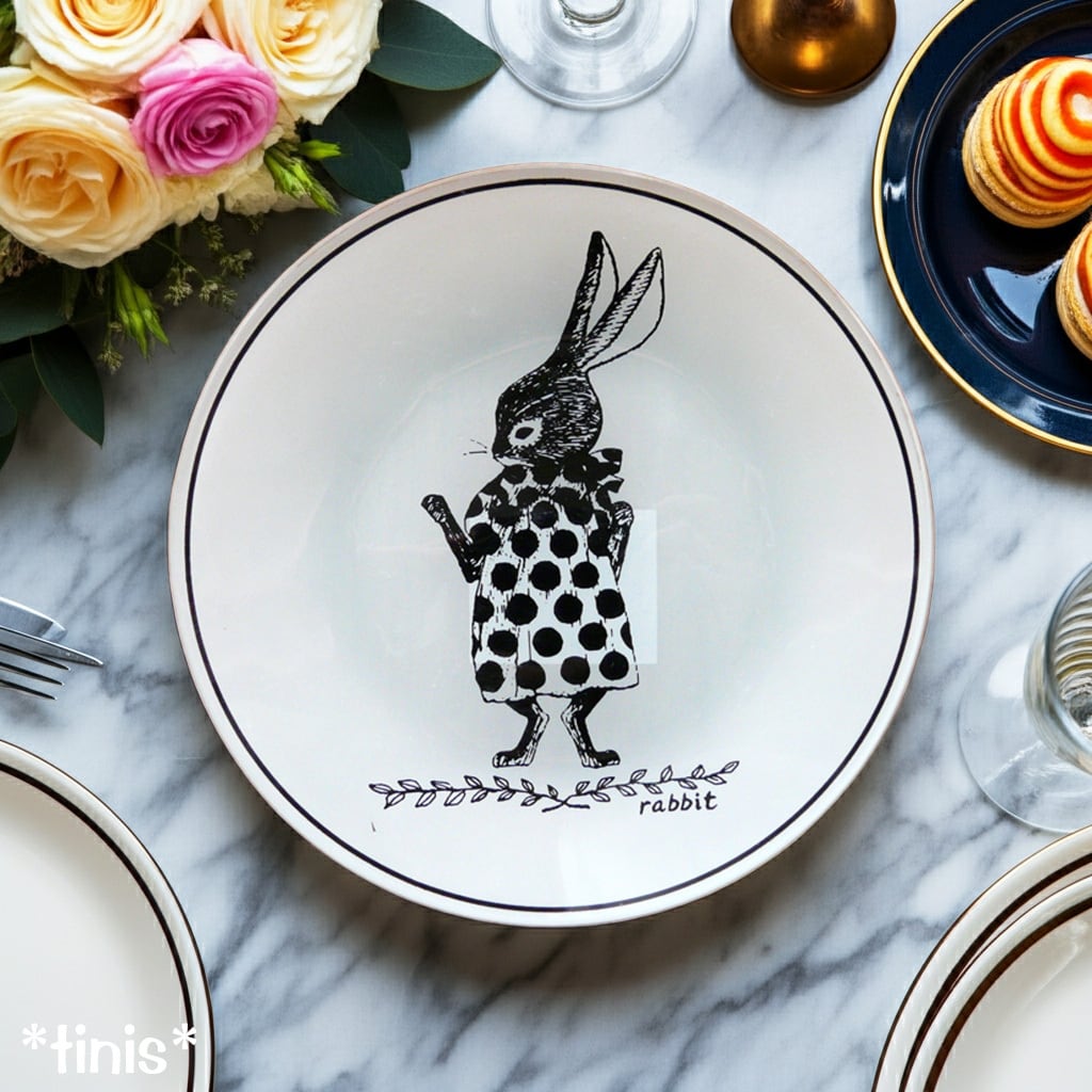 モノトーンの水玉ドレスを着た猫とうさぎがシックで大人可愛い♪