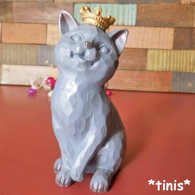 (444GY) カルナック シェリーキャット グレー 猫 アンティークアニマル 置物