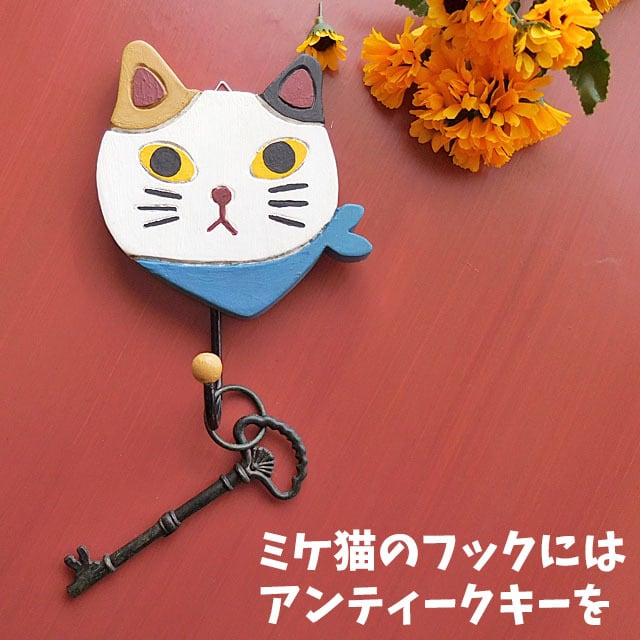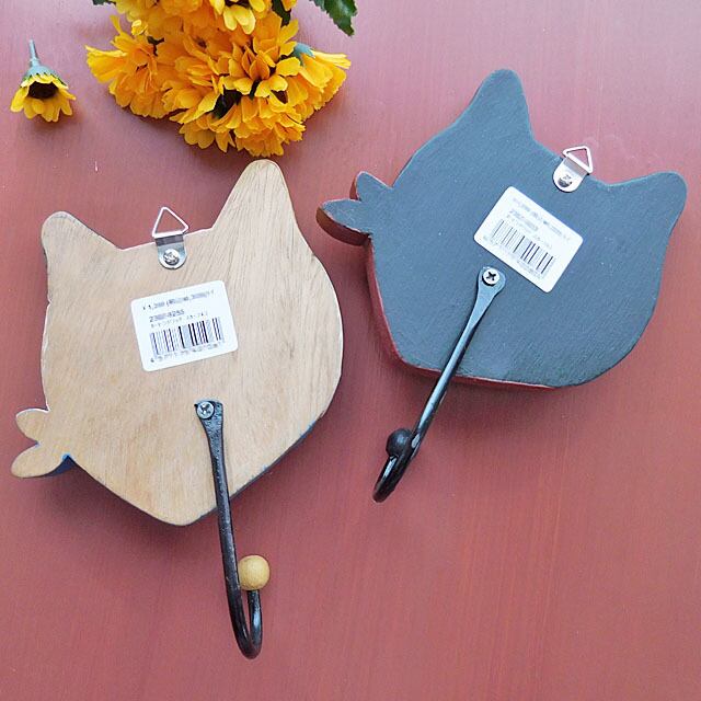 可愛くペイントされた猫のお顔にアイアン製のフックが付いています。