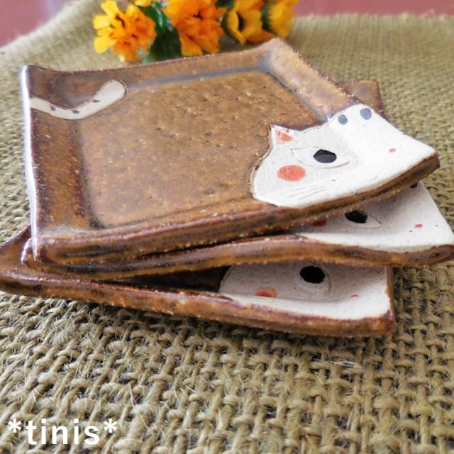 (373) 猫豆皿 角型 箸置き 食器 作舎 クラフトマンハウス