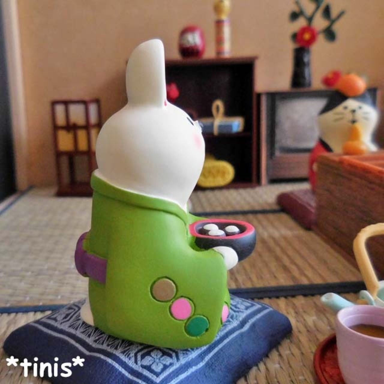 デコレ コンコンブル おぜんざいうさぎは高さが約5センチの小さなマスコットです。