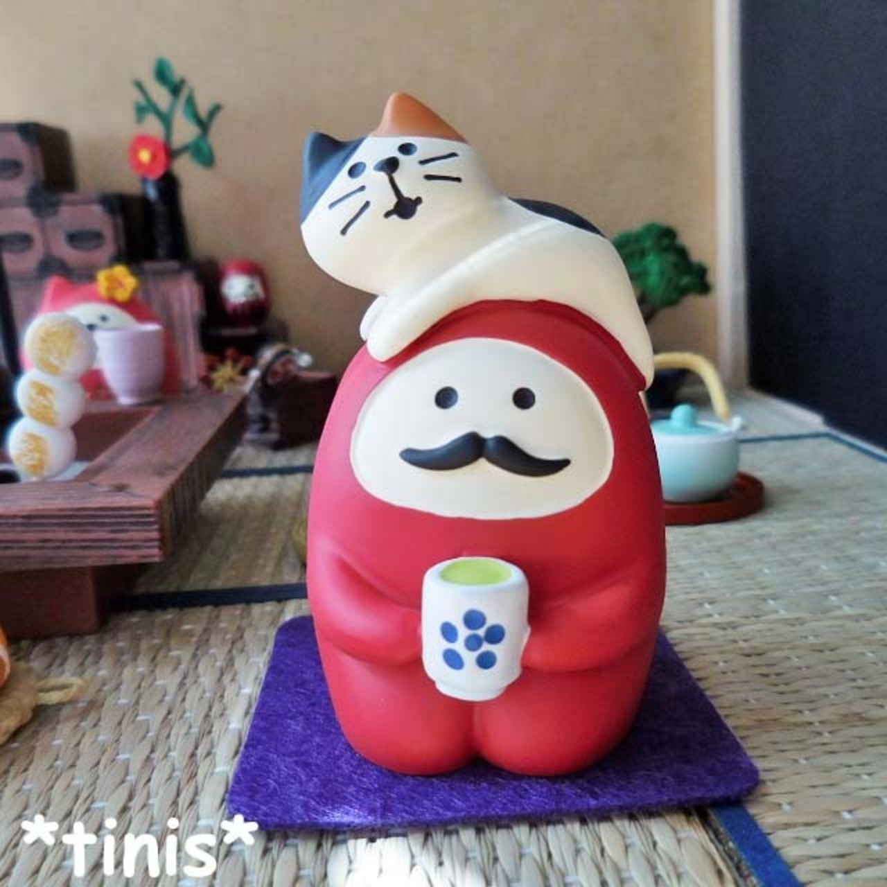 だるまさんは修行を積んだので、頭に猫が乗っていてもまったりとお茶を飲むことが出来ます!!