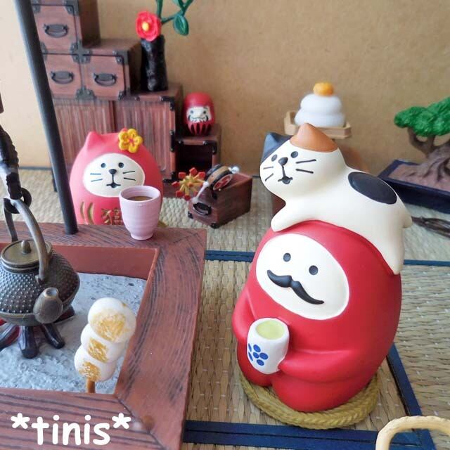 日向ぼっこしたら猫もだるまもポカポカで~す♪