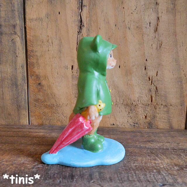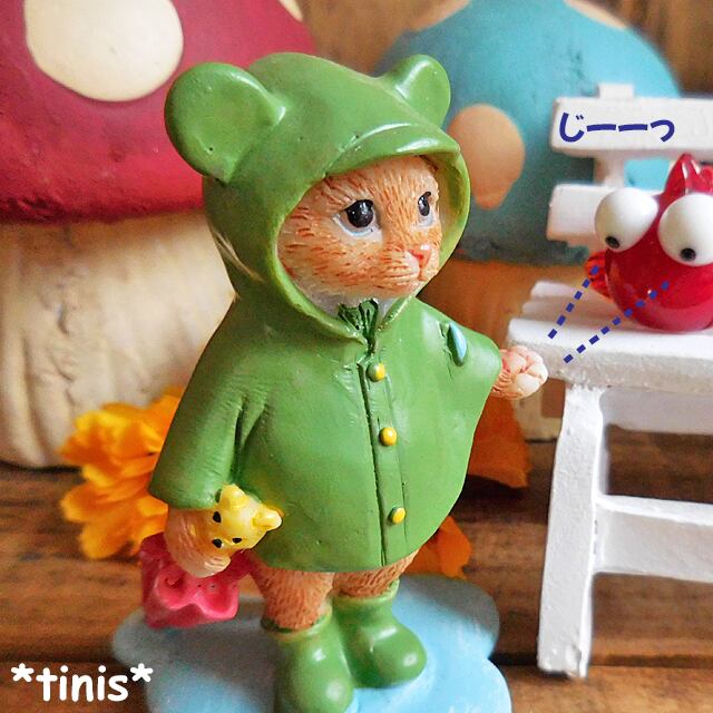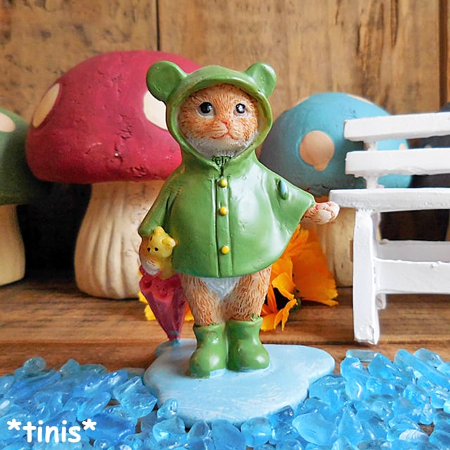 (396) 猫 レインコート 雨の日 置物 ミニチュア オブジェ