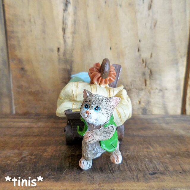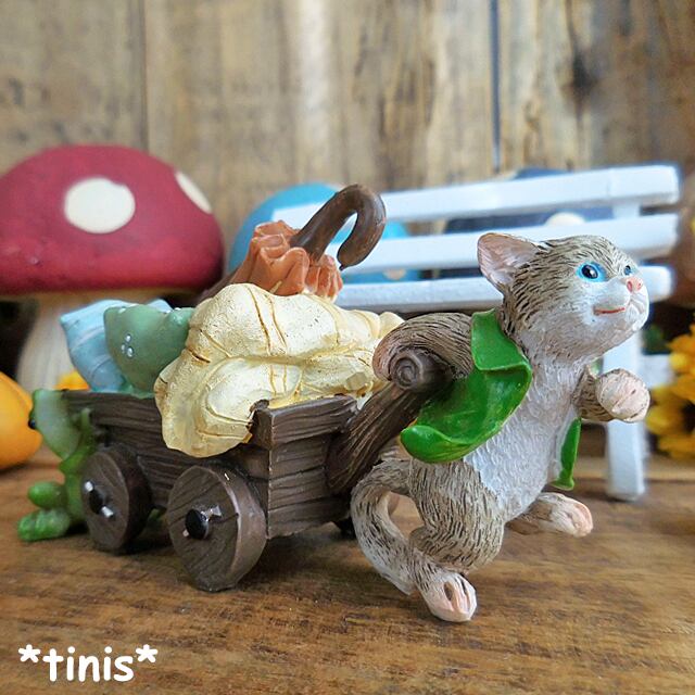 (398) 猫と蛙と荷車 置物 ミニチュア オブジェ