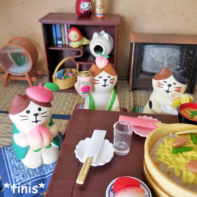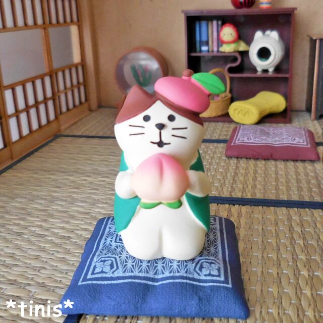 (429) デコレ コンコンブル 桃まるかじり猫 ちいさな桃の木の下で ミニチュア マスコット