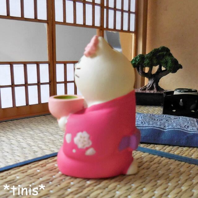 ピンク色の着物が素敵な可愛い京抹茶猫。